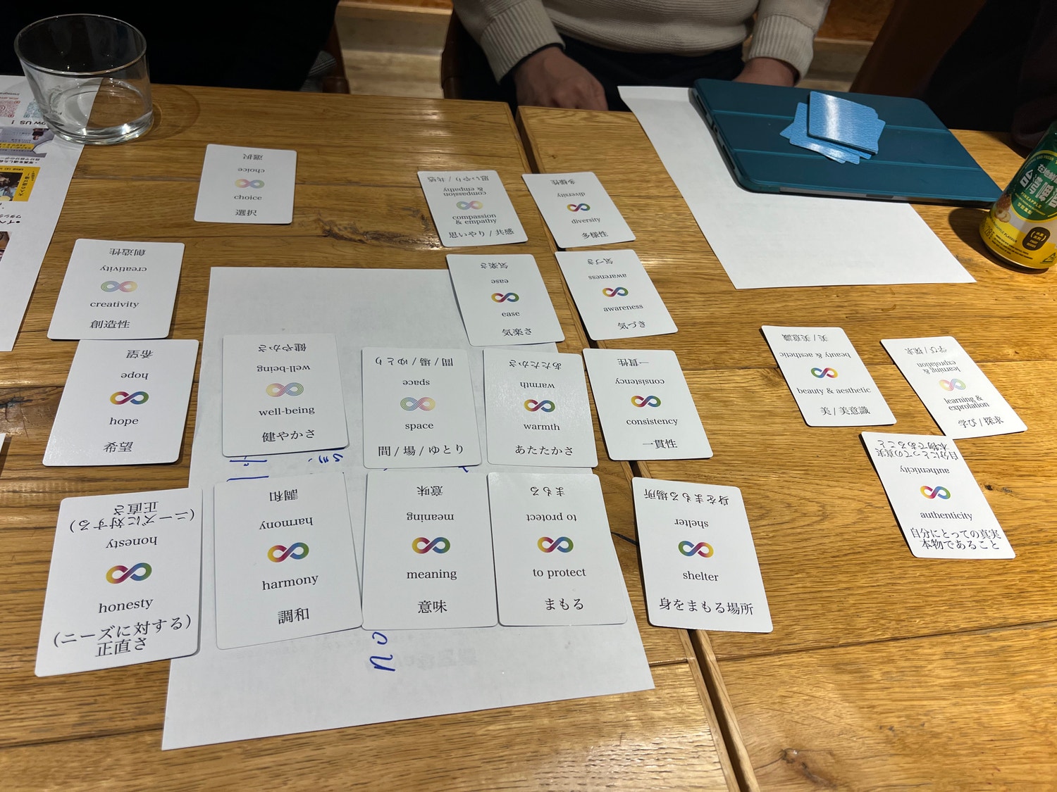 提示されたニーズカードを見て、自分は何を大事にしている?どんな願いがある?と、深まります