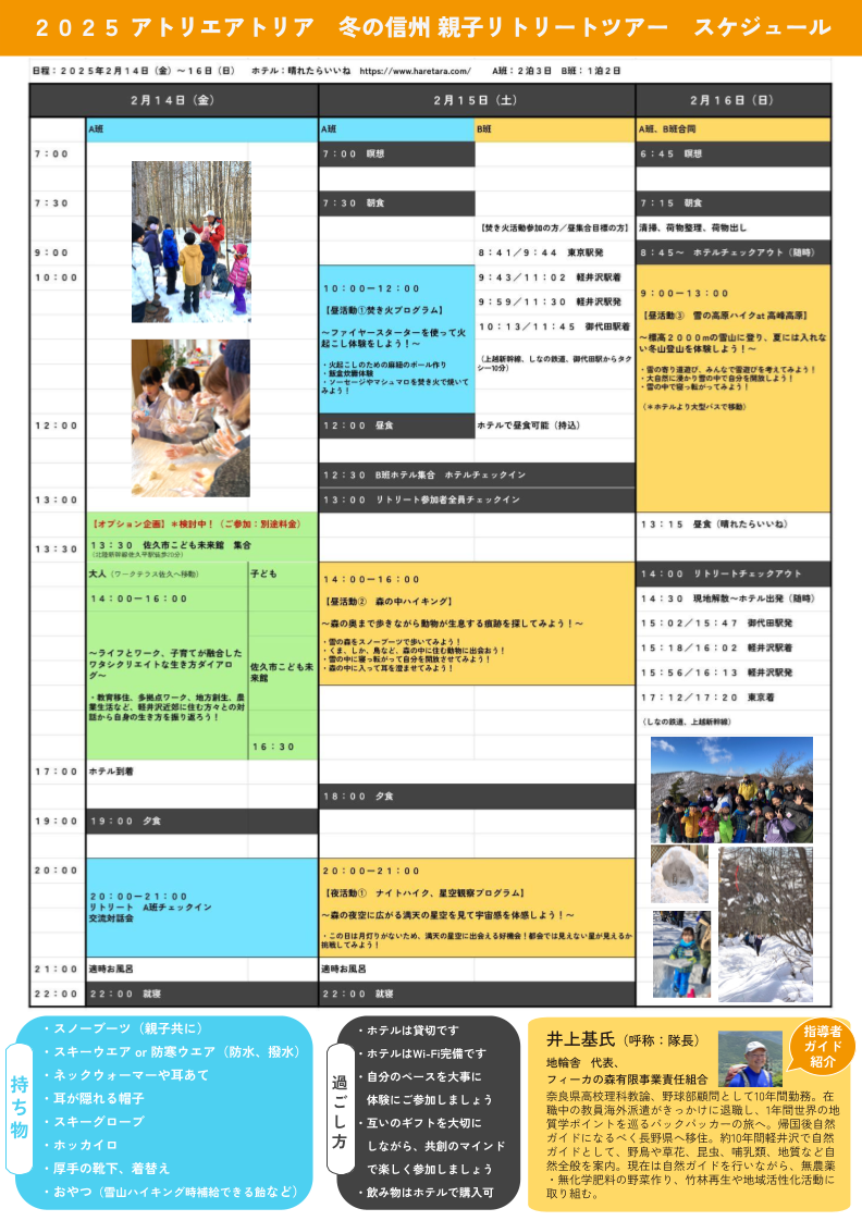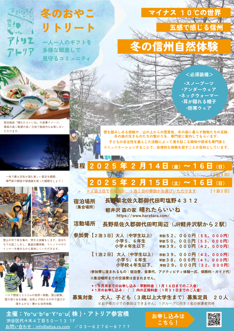 【アトリエアトリア 冬の信州 親子リトリートツアー】