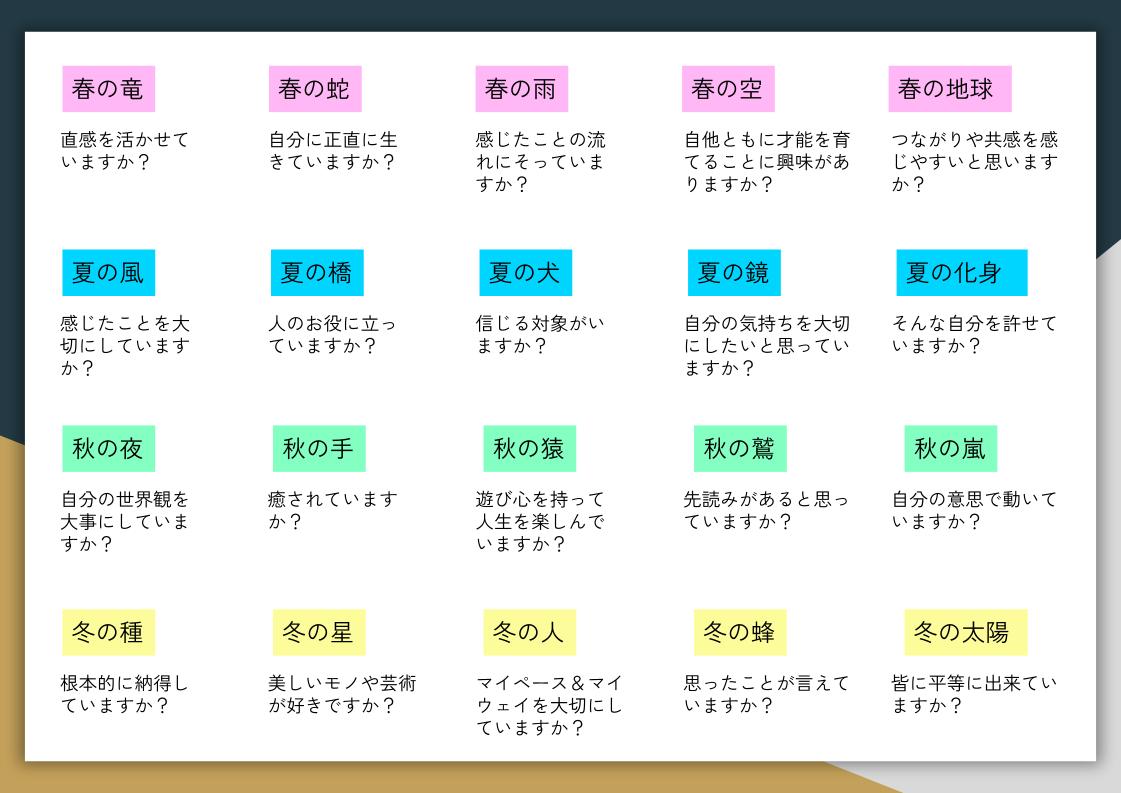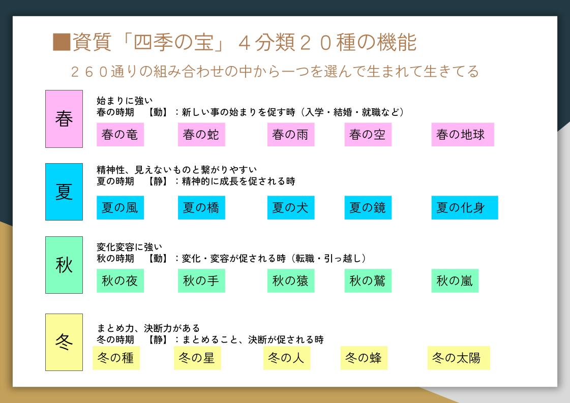 資質学に出てくる「20の四季の宝」の概念全てに触れることができます。