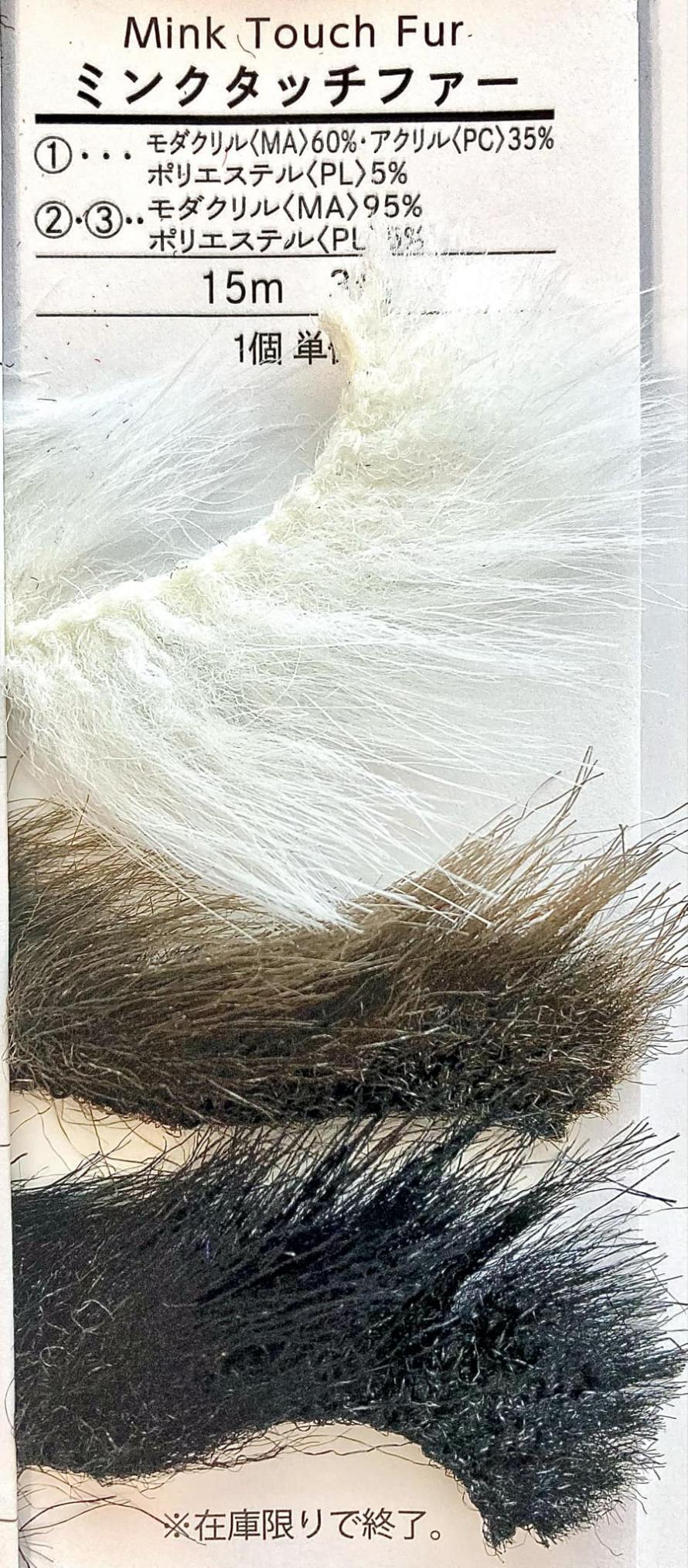 【ミンクタッチファーの特徴】ミンクのような光沢が美しい、やわらか肌ざわりのファー。毛足の部分と芯の部分が同じ色なので編んだ時に、芯糸が目立つことなくより高級感のある作品に仕上がります。【ファッションコーデイメージ】ミンクタッチファーは、ウール素材のコートに映えます。上品な仕上がり。